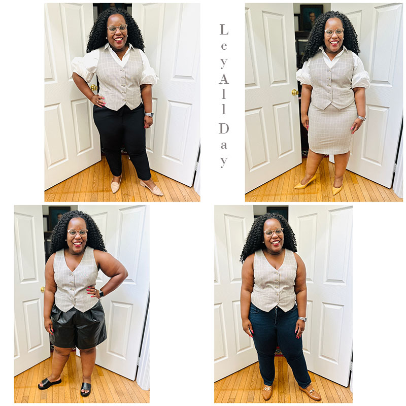 This vest from Express that also has an available matching skirt is a great vest option. I wore the top look to a meeting where I didn’t want to wear a suit, but wanted to still look professional. I’ve worn the next two looks to work. The last two looks are easy causal options. I’m all about getting the most bang for my money and vests allow me to do that. I’ve shown just five ways to wear one vest, but the truth is, the options and combinations are endless.